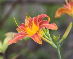 ノカンゾウの花、夏の陽射しに日焼けしたような赤い花弁です。