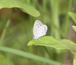 ツツジの葉の上でやすむヤマトシジミです。