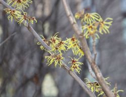 マンサクの花が満開になりました。 花びらは、くす玉がはじけて出てきた黄色い紙テープのようです。