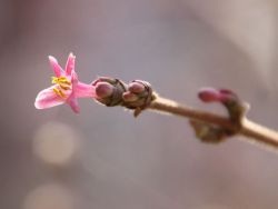 花の大きさ数ミリのウグイスカグラの淡いピンクの花が咲きました。 昨年より2週間ほど遅い開花となりました。