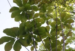 園内でオオバギボウシに次ぐ葉の大きさのホオノキが空に向かって大きな葉っぱ拡げています。