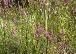 上の池の浮島は、赤紫色のミソハギの花でいっぱいです。