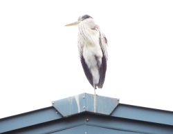 アオサギが隣の建物の屋根から周囲を見渡していました。